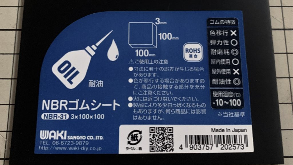 純正の品質にはかなわないと思いますが、今回は以下の3mm厚のNBRゴムシートというものを使います。