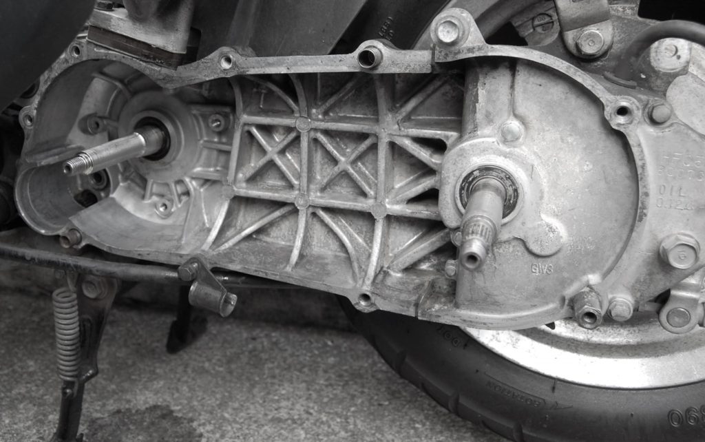 あとはナットを外すだけですが、プーリーホルダーも一緒に共回りするので車体をサイドスタンドで駐輪した状態にしてからナットを緩めます。