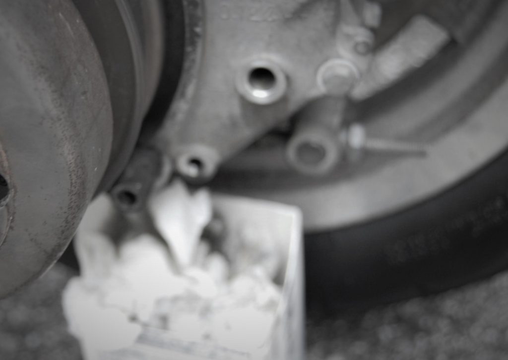 ギアオイルはリアホイールのほうに入っているので、まずはドレンボルトを取り外します。