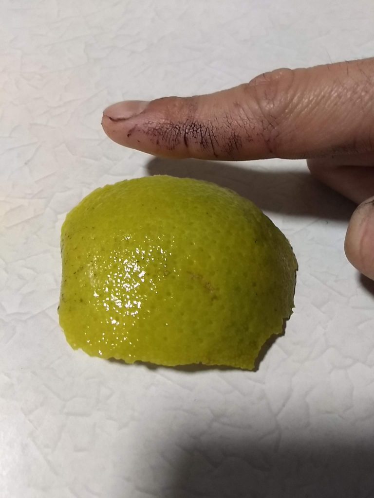 皮にはレモンと同じような汚れ落とし効果があるようだったので仕事で手についた汚れを落とす事にしました(゚∀゚)